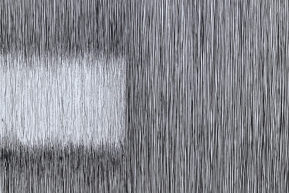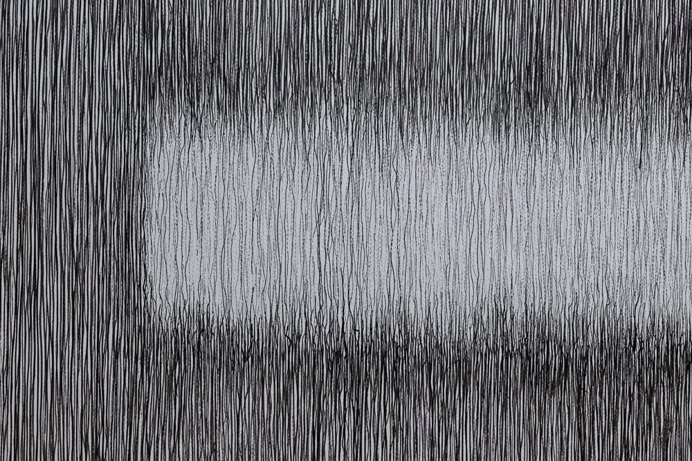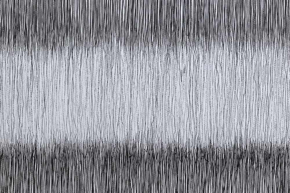 Dei vert bygde opp gjennom lag på lag med linjer eller material, der den repeterande gesten utgjer sjølve grunnlaget for komposisjonen.